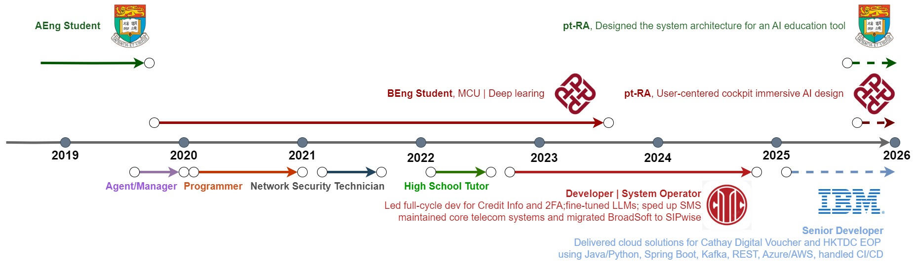 Joined IBM as a Senior Developer on my second major project; leveraging full‑stack experience and independent problem‑solving skills. I independently built or investigated multiple services.The Exhibition+ system is a next‑generation platform for exhibitors to apply for booths. The system can support different types of local Hong Kong and overseas fairs, conferences, forums, and seminars. The promoted exhibition model combines online and offline elements, extending the face‑to‑face interactions and business negotiations of physical events into an online intelligent matching platform to connect business partners.It is a scalable cloud-native solutions.